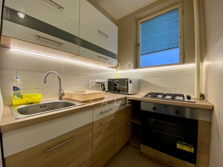 Located in a panel building with central heating, the apartment is maintained in good condition and comes fully furnished and equipped, allowing the new owner to move in immediately or start renting it out without any additional investment. Air conditioning is installed, ensuring comfort during the warmer months.